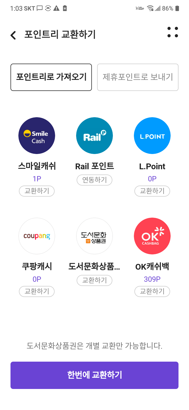 포인트리 교환하기 화면캡쳐
