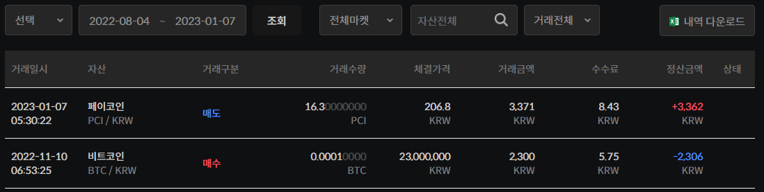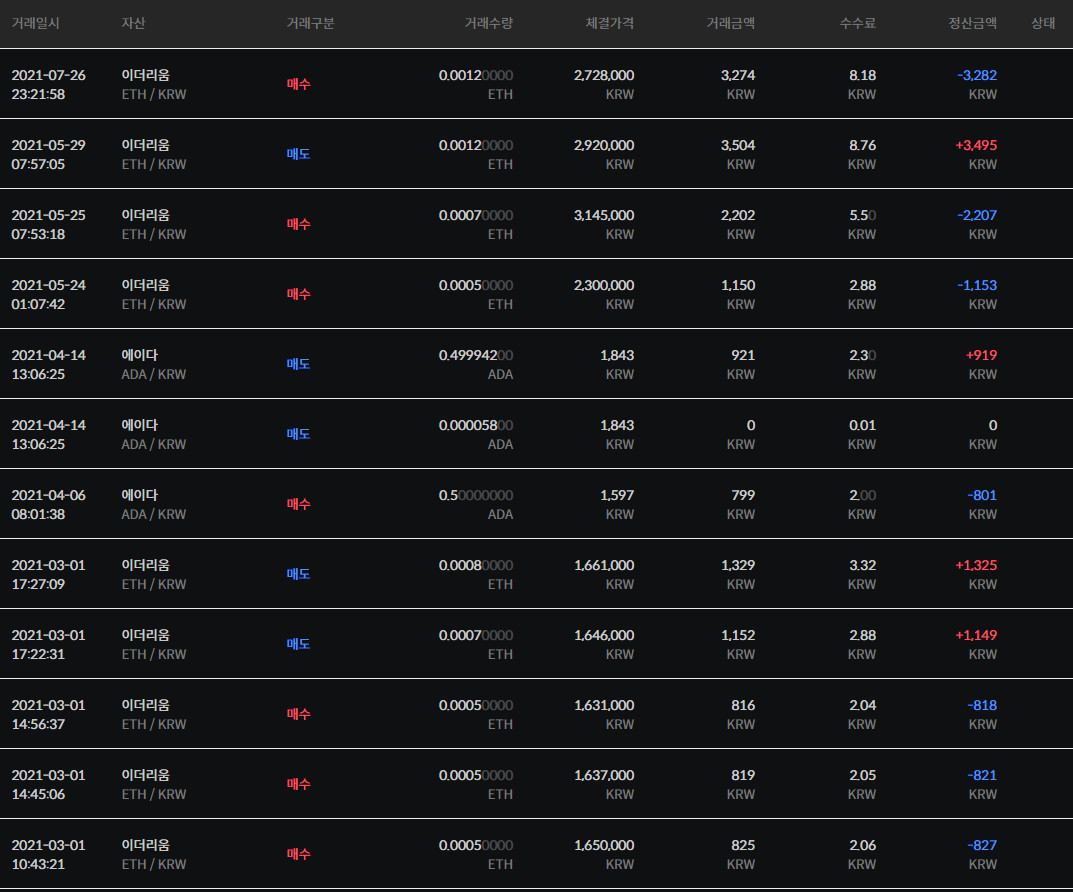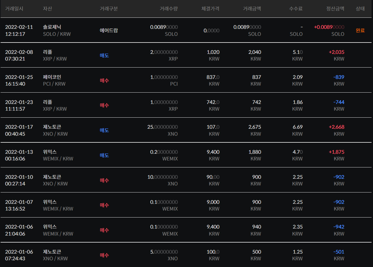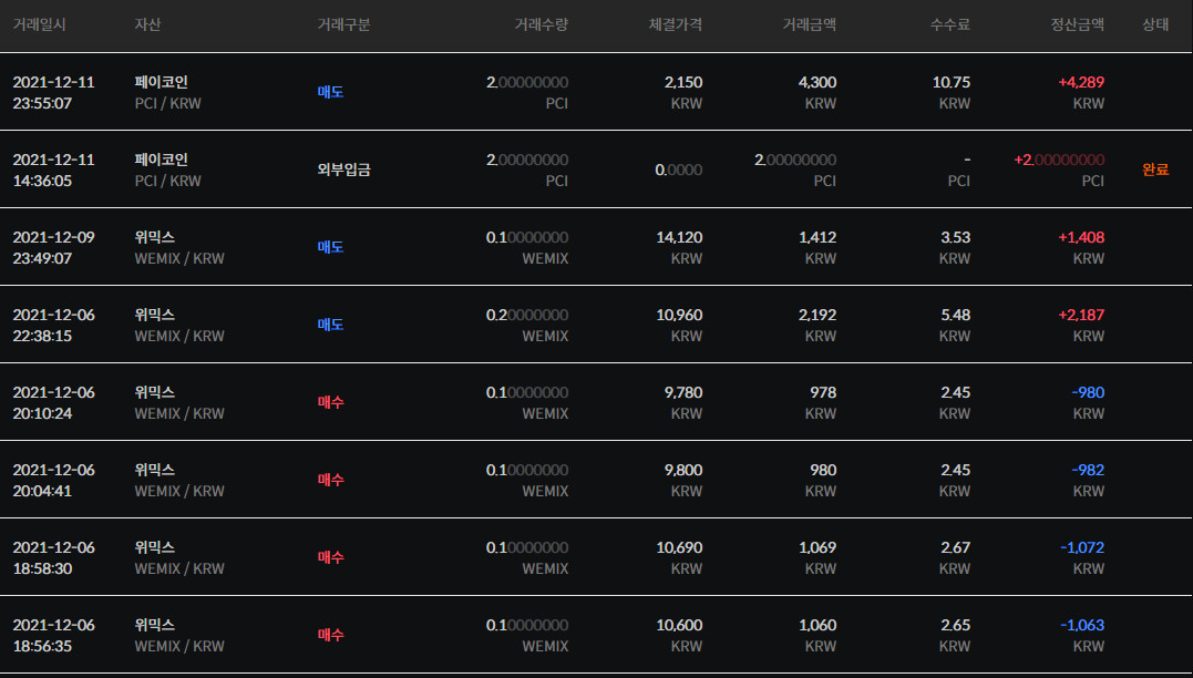 ◆ 빗썸 거래내역 7.