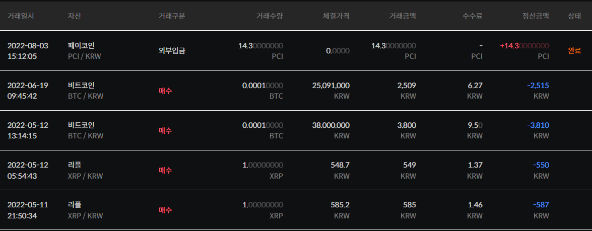◆ 빗썸 거래내역 5.