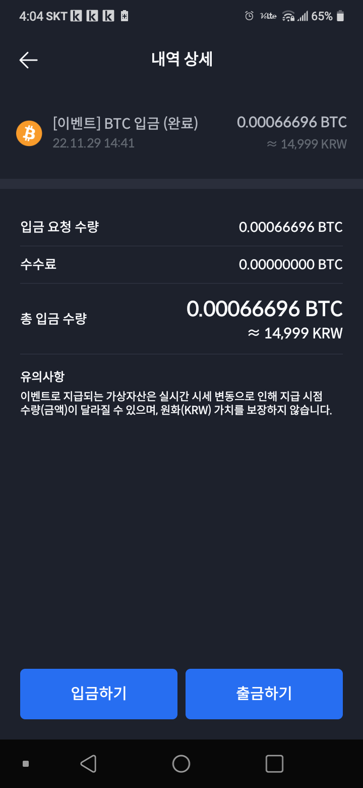 코빗 이벤트로 받은 비트코인 전량매도