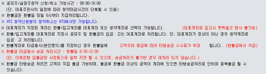 (단, 대표계좌가 정상이 아닌 경우 청약계좌로 입금∙고 처리됩니다.)