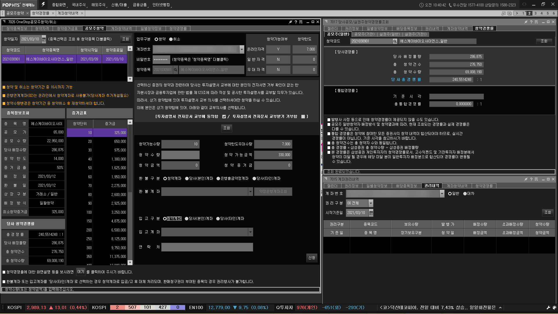 SK바이오사이언스 청약할 때 미래에셋대우, 한국투자증권 HTS는 렉이 좀 생겼었다.