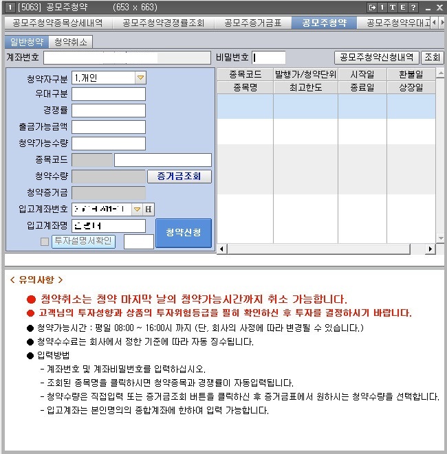 ★[2900] 공모청약종합 ::: 공모청약, 청약조회/취소, 추가납입, 청약배정내역, 청약경쟁률