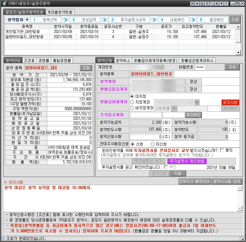 [7016] 계좌청약/배정/환불내역