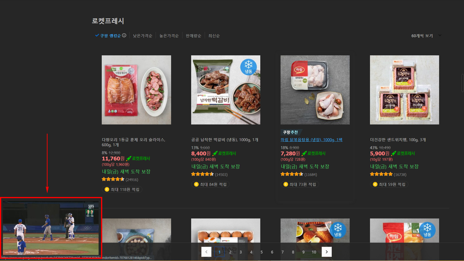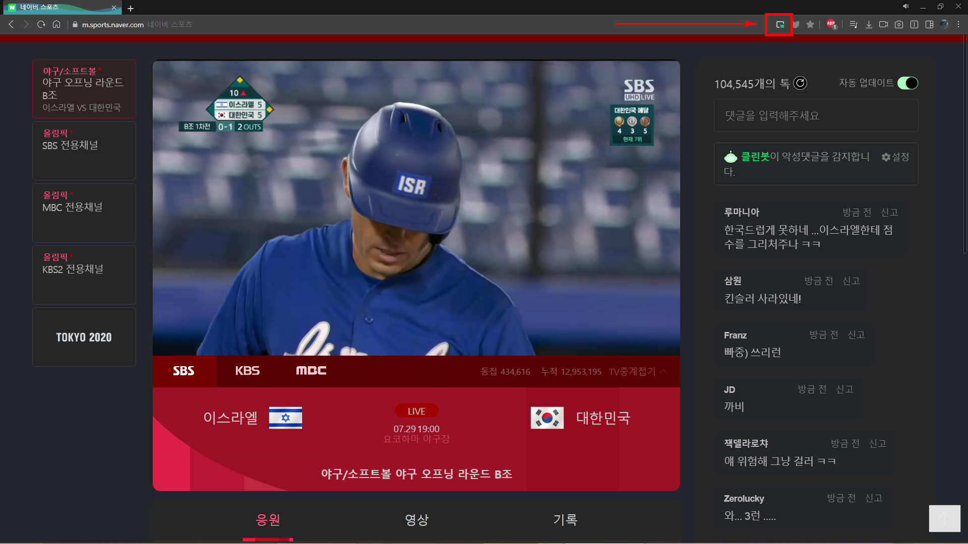 네이버 스포츠에서 PIP모드 실행