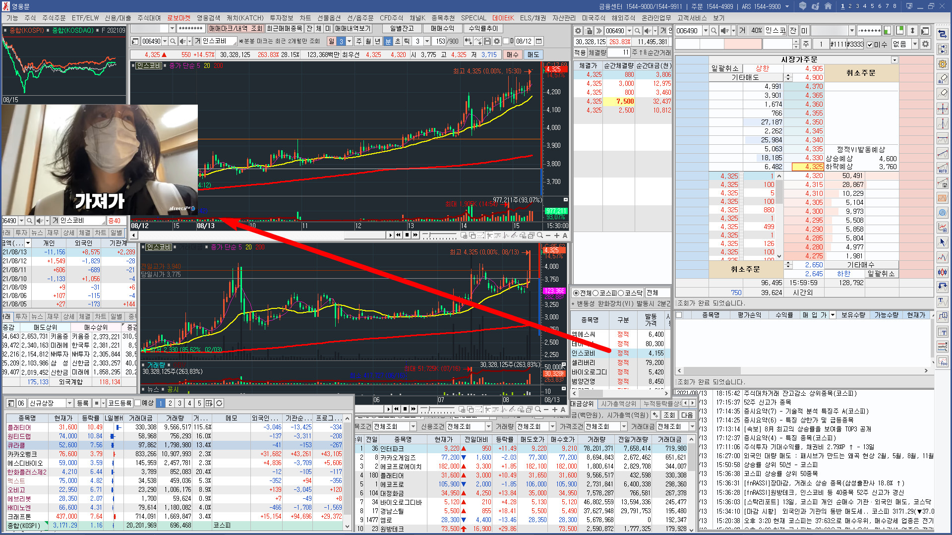 HTS에서 PIP모드 영상을 놓고 재생하는 화면