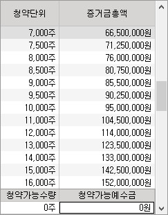 | 균등배분수량 | 287,500 | 공모전 주식수 | 8,720,000 | 83.69% | |