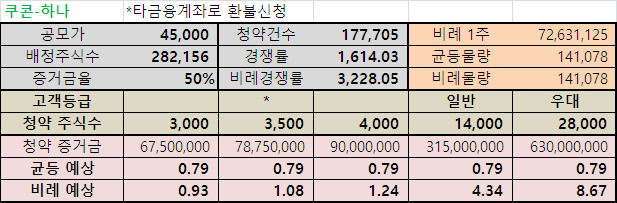 청약단위 : 1,000 주 초과 ~ 10,000 주 이하 : 500주