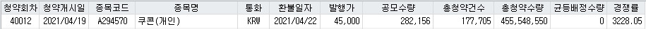 | [공모주] 씨앤씨인터내셔널 (2021.05.07) (0) | 2021.05.04 |