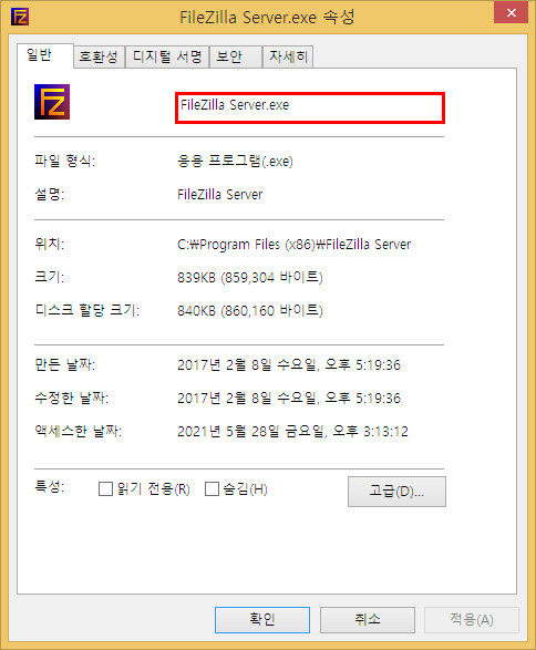 마우스 오른쪽 버튼 클릭 > `속성` 클릭