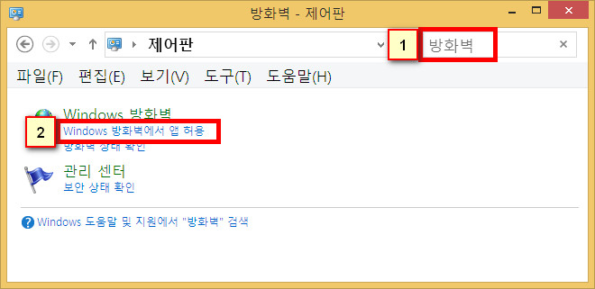 3-1) 제어판 > 검색: 방화벽 > 'Windows 방화벽에서 앱 허용' 클릭 >