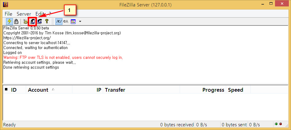 3-6) FileZilla Server '개인','공용' 박스 모두 체크하고 '확인' 클릭