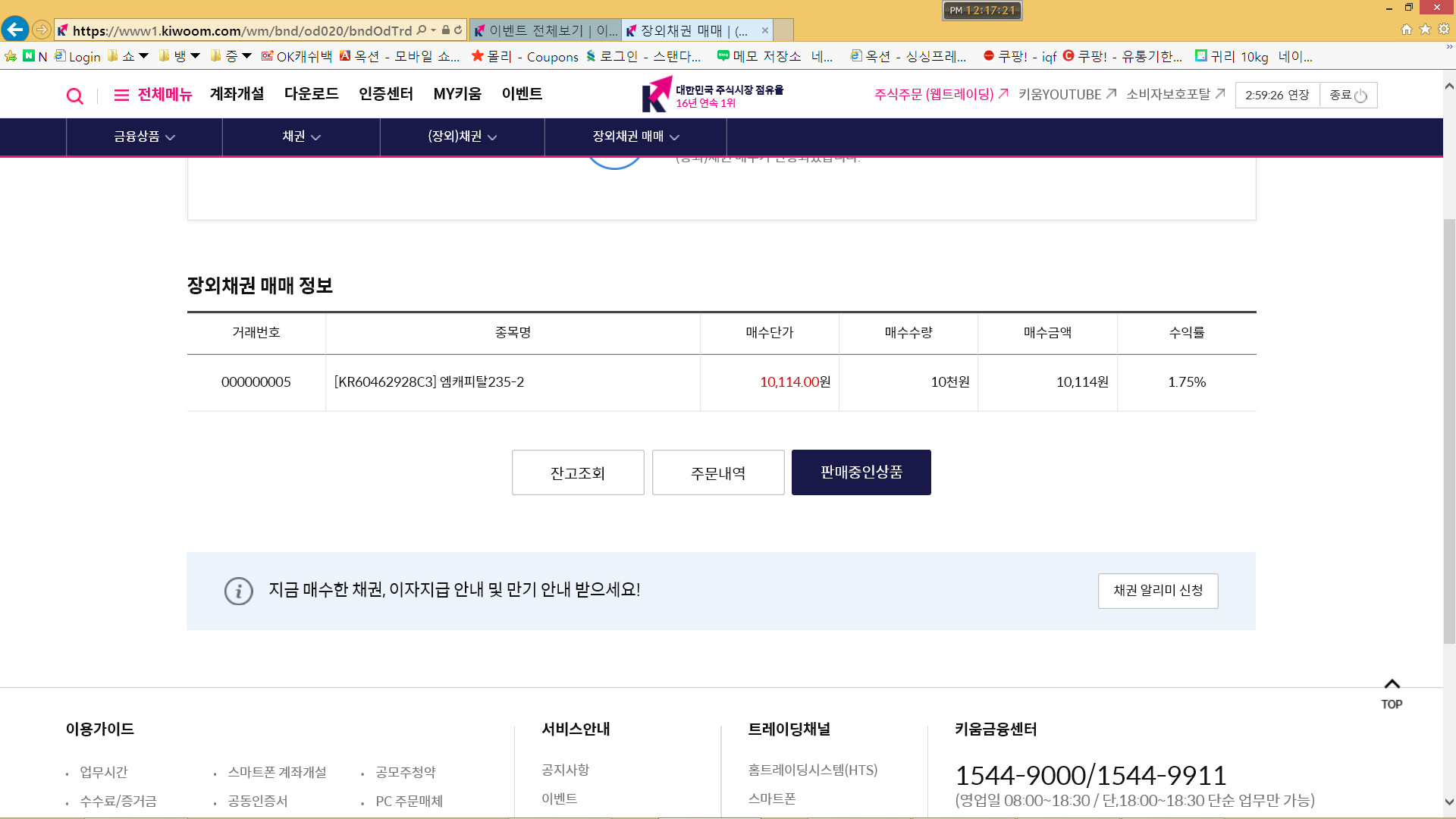 * 메뉴 : 금융상품 > 채권 > (장외)채권계좌정보 > 장외채권 매매