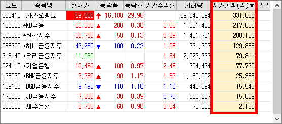 시총 33조원 (은행 업종 1위)
