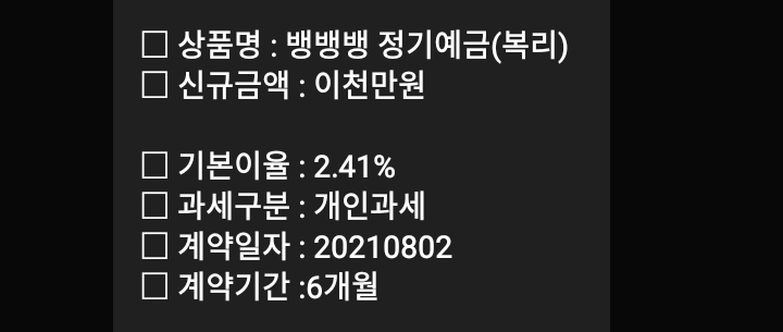 [2021.07.06] 상상인저축은행, 뱅뱅뱅 파킹통장369 정기예금 가입, 24개월, 1.81~2.11%, 4900만원