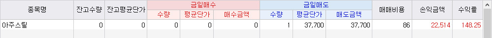 아주스틸 1주 매도
