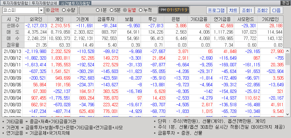 외국인은 엄청나게 던지고 있고, 그걸 개인투자자가 다 받아내고 있다. ㄷㄷ