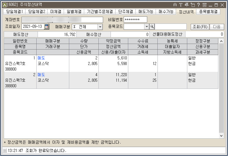 오전에 주문을 넣었지만 체결이 안되었고,