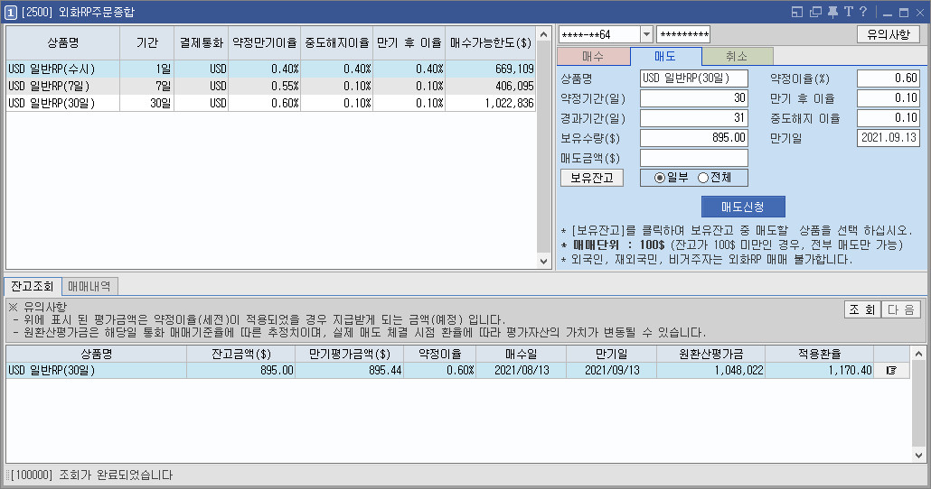 [2500] 외화RP주문종합