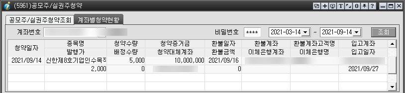 `신한스테이 입금고 이벤트 시즌2`에 참여하고 있는 중이라서 계좌에 남아있던 1,000만원으로 비례청약까지 신청했다.