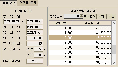 청약신청 : 2,000주 (4,200만원)