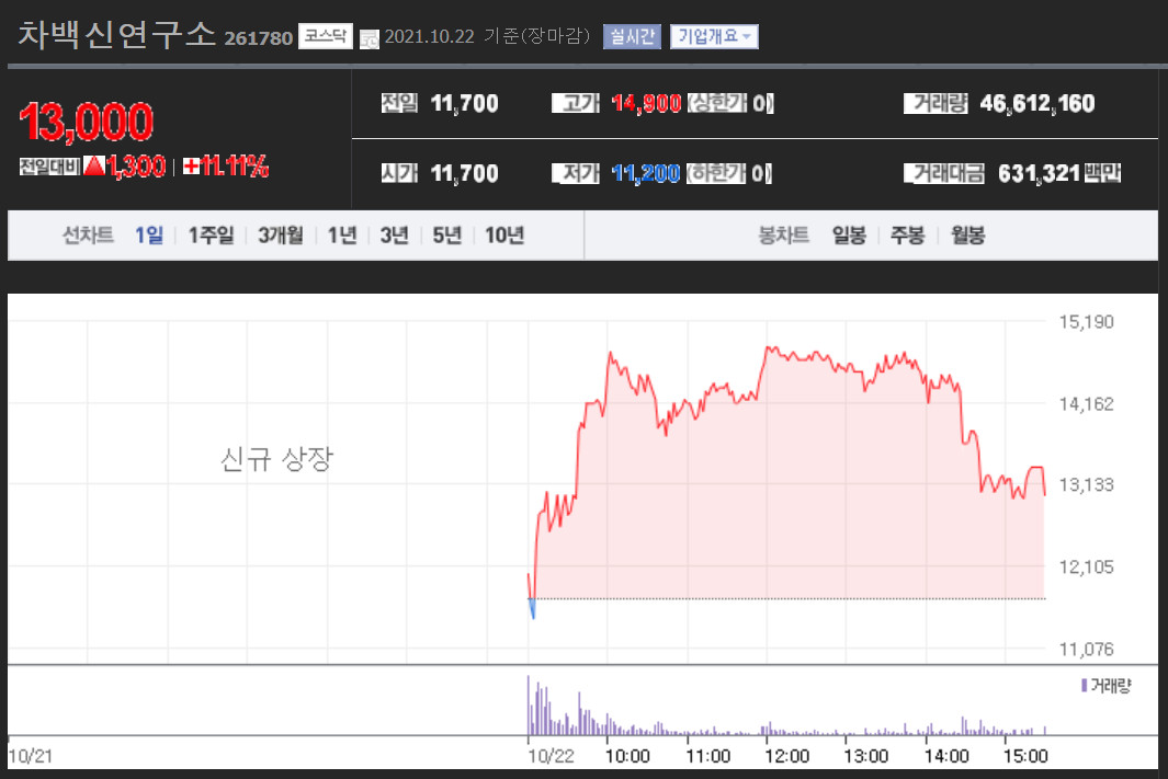 차백신연구소 상장일이였다.