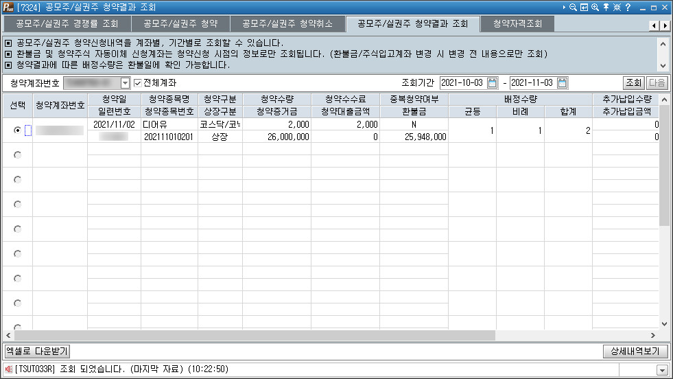 청약신청 : 1,000주 (715만원)