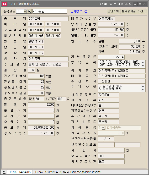 | [2021.11.12] 알비더블유 공모주 청약 (미래) (0) | 2021.11.12 |