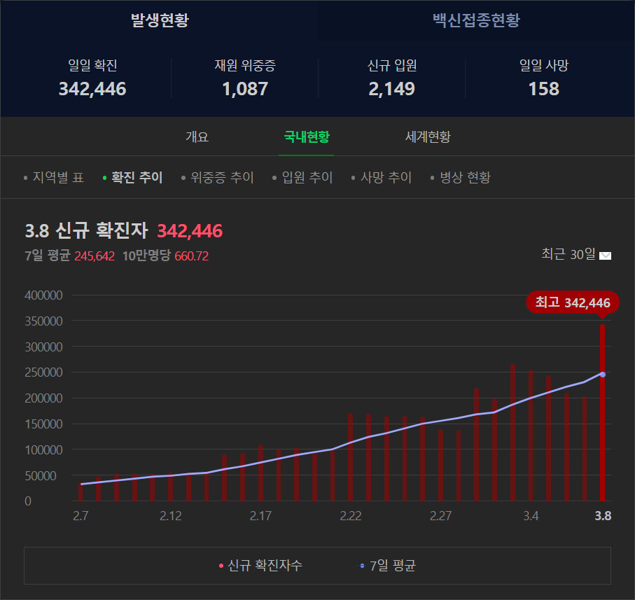 오미크론 국내 검출률 50% 넘어 우세종됐다…"의료체계 전환" (신규확진 7,513명)