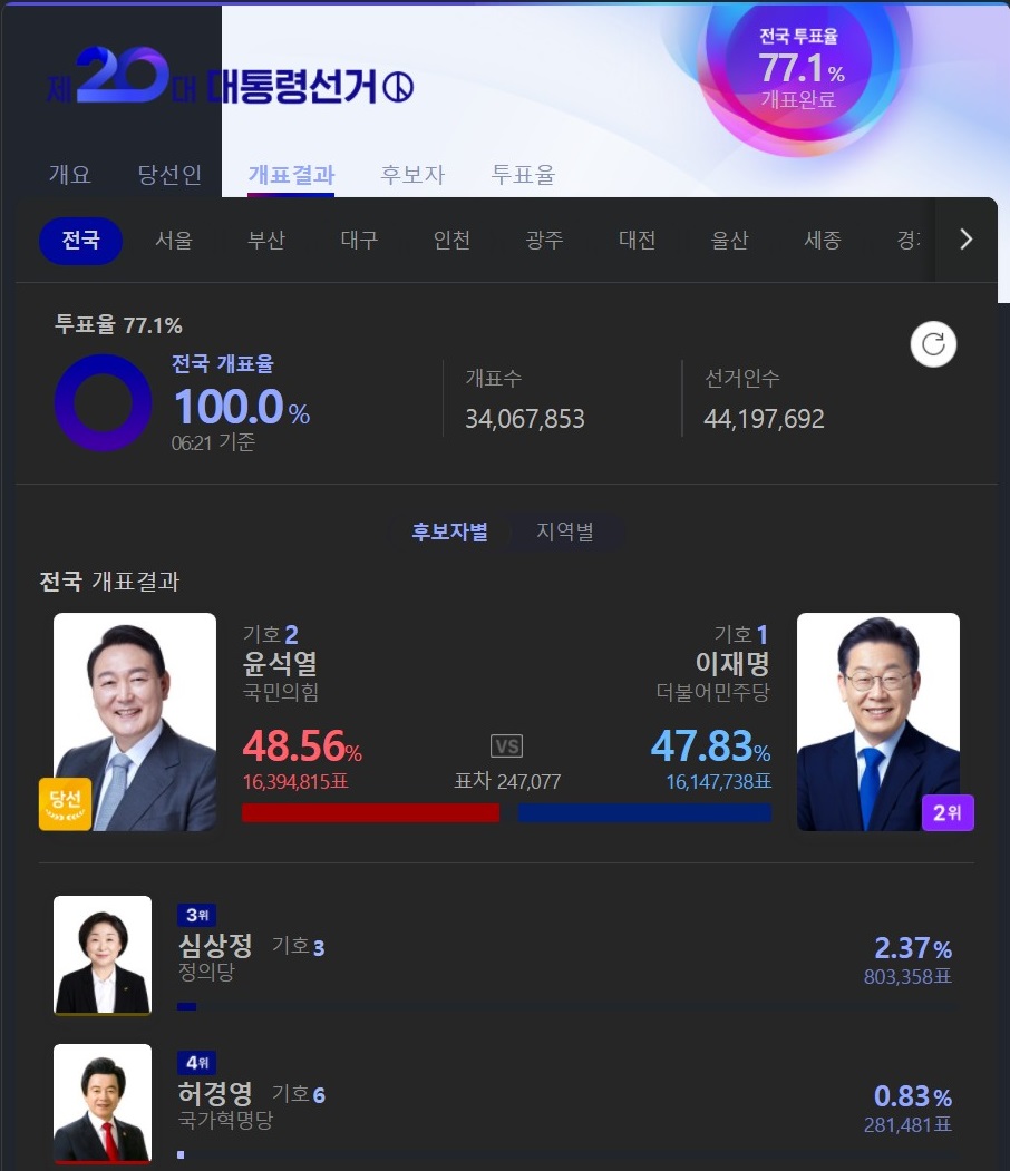 3월 9일 : 대한민국 - 제20대 대통령 선거