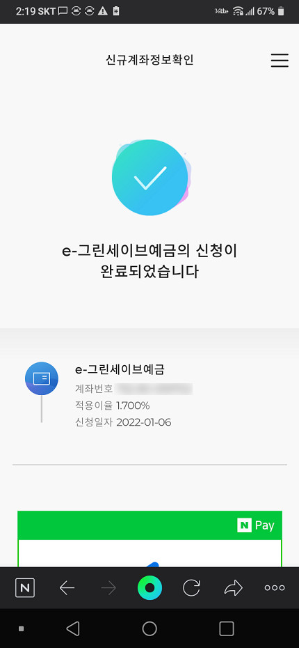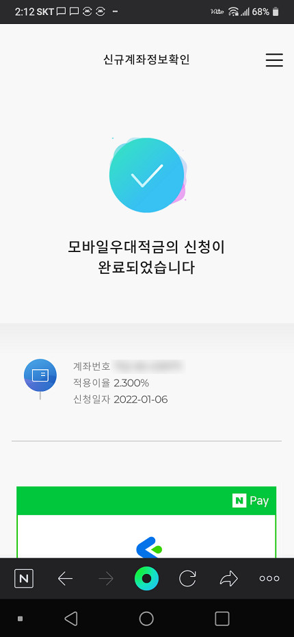 네이버페이 링크를 통해서 정기예금 신규 가입