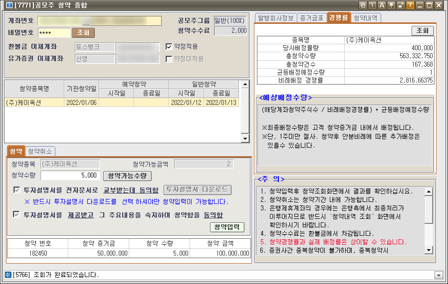 [2022.01.13] 케이옥션 공모주 청약 (신영)