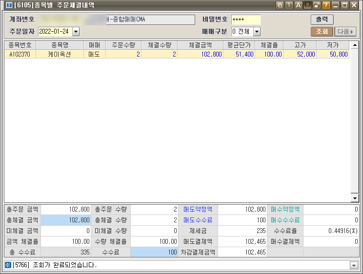 매도 주문을 넣었지만 체결 결과가 바로 뜨지 않고, 한참이 지나서야 나오더라.