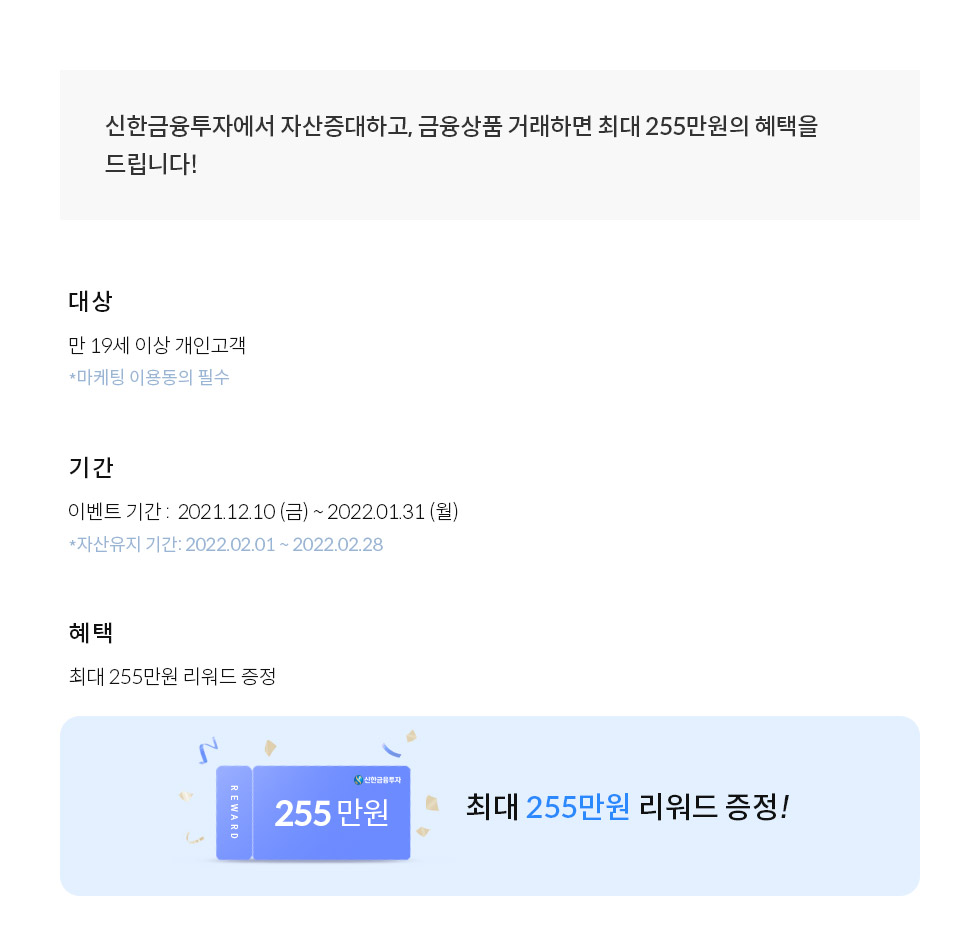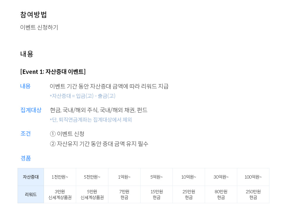 이벤트 신청일에 상관 없이 이벤트 기간 동안 발생한 자산증대 금액을 모두 집계합니다. (ex: 2021.12.31에 이벤트 신청했어도 2021.12.10~2022.01.31 기간 모두 집계)