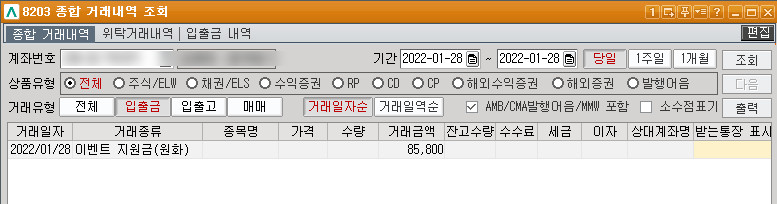 이벤트 지원금 85,800원이 입금 됐다.