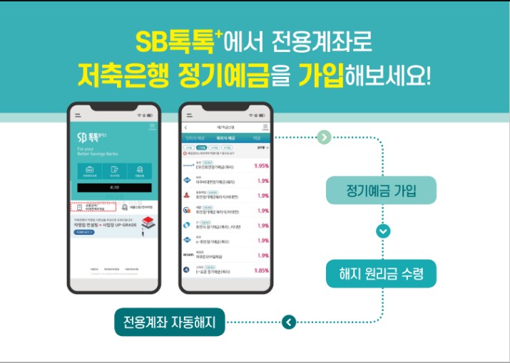 저축은행 정기예금 가입, SB톡톡+에서 '전용계좌'로 쉽고 간편하게 이용할 수 있습니다.