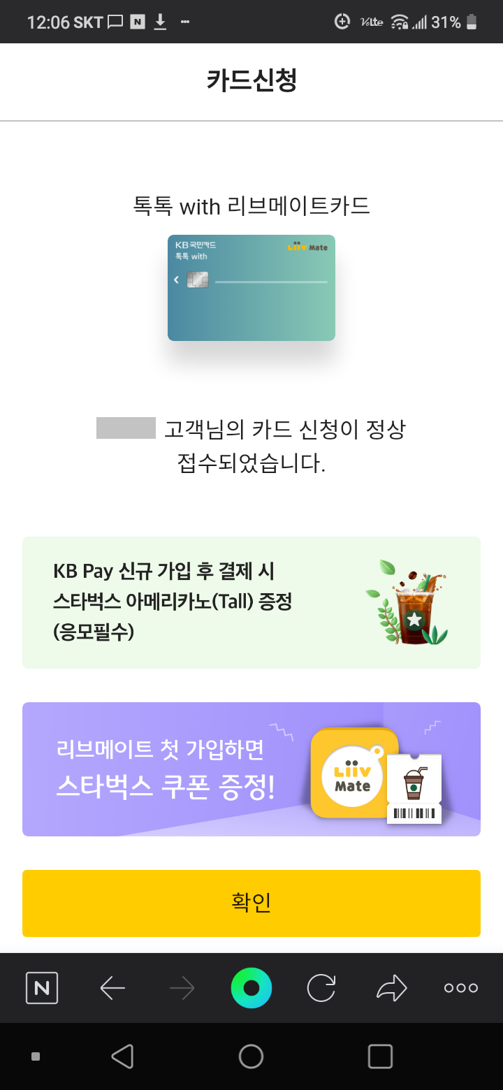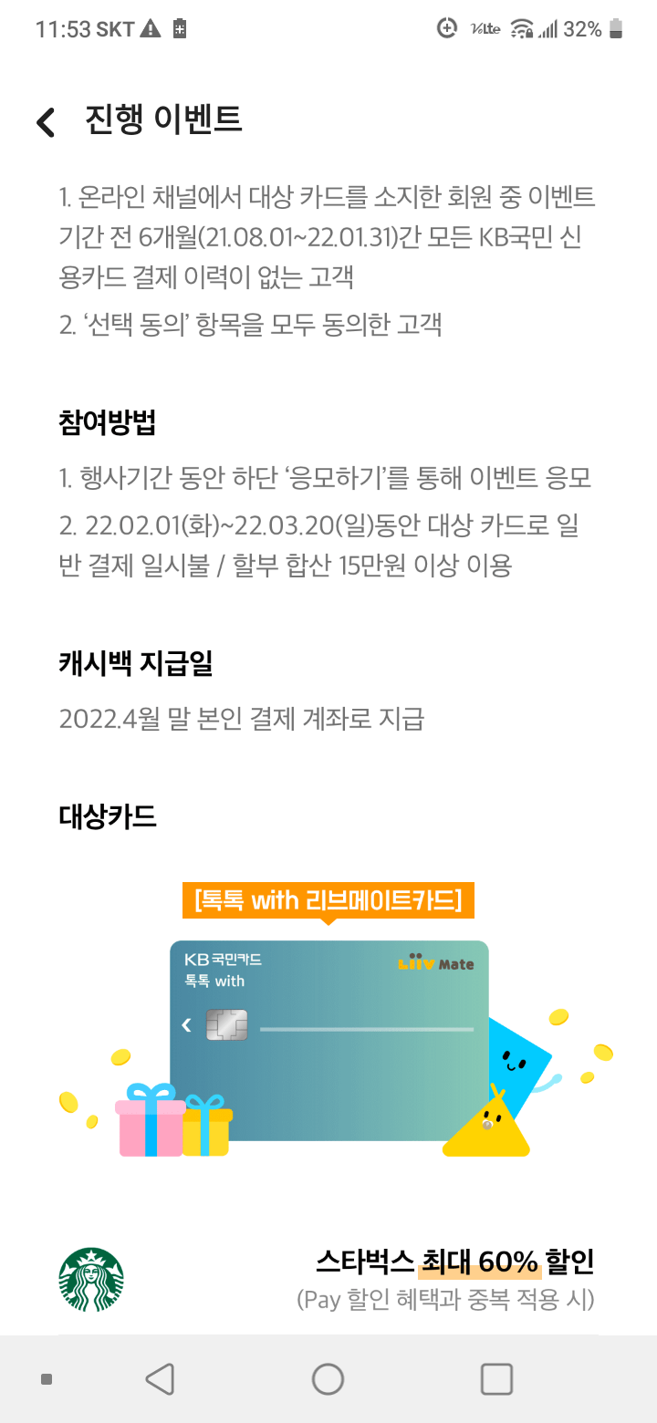리브메이트 앱의 이벤트 페이지에서 카드 이벤트가 있길래 신청을 했다.