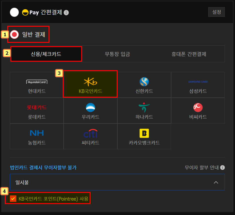 옥션에서 KB국민카드 결제화면 (포인트 사용 가능)