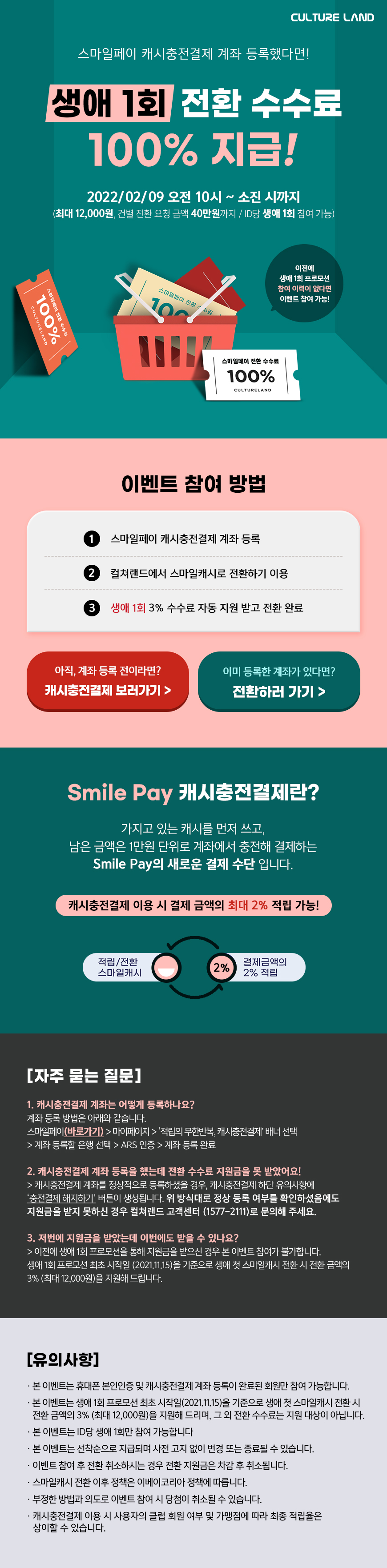 [2022.01.05] 컬쳐랜드 컬쳐캐쉬 -> 스마일캐시 전환 수수료 지원