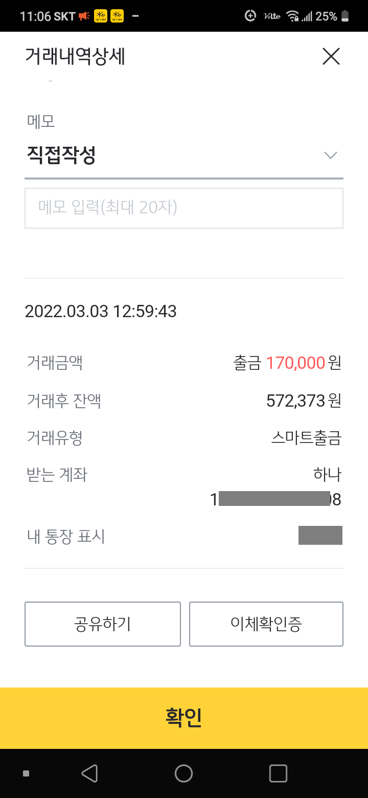 한도제한계좌임 : 1일 이체한도 100만원 (오픈뱅킹으로 추가 인출 불가)
