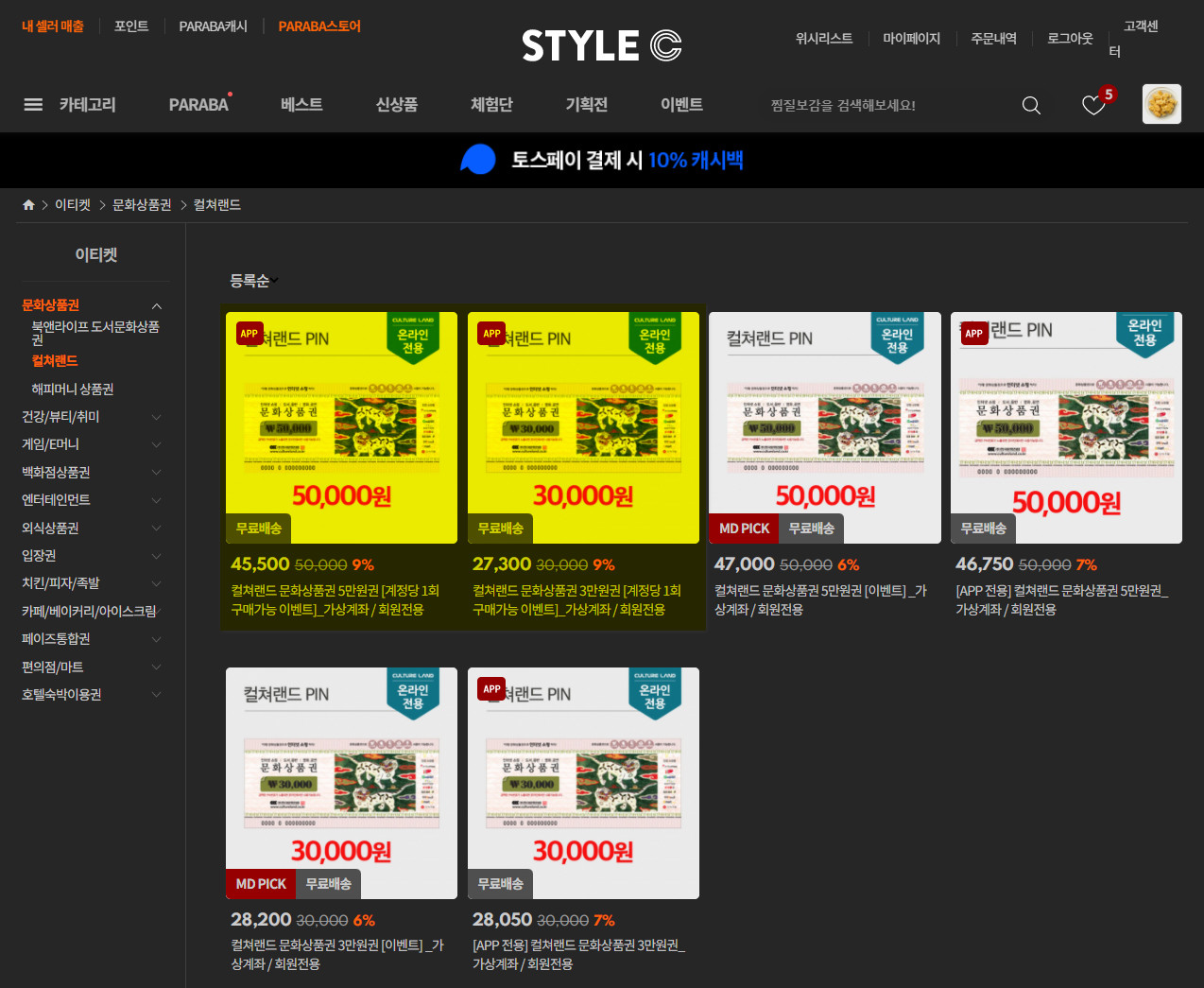 컬쳐랜드 문화상품권 5만원권 [계정당 1회 구매가능 이벤트]_가상계좌 / 회원전용