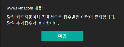 해지를 하고 다시 등록을 해보려는데 팝업 메세지가 뜨고 안되더라.
