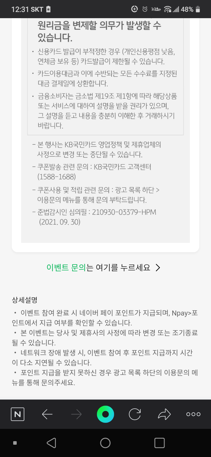 KB국민카드에서 네이버 페이포인트 2만점 받음 : https://weezzle.tistory.com/1839