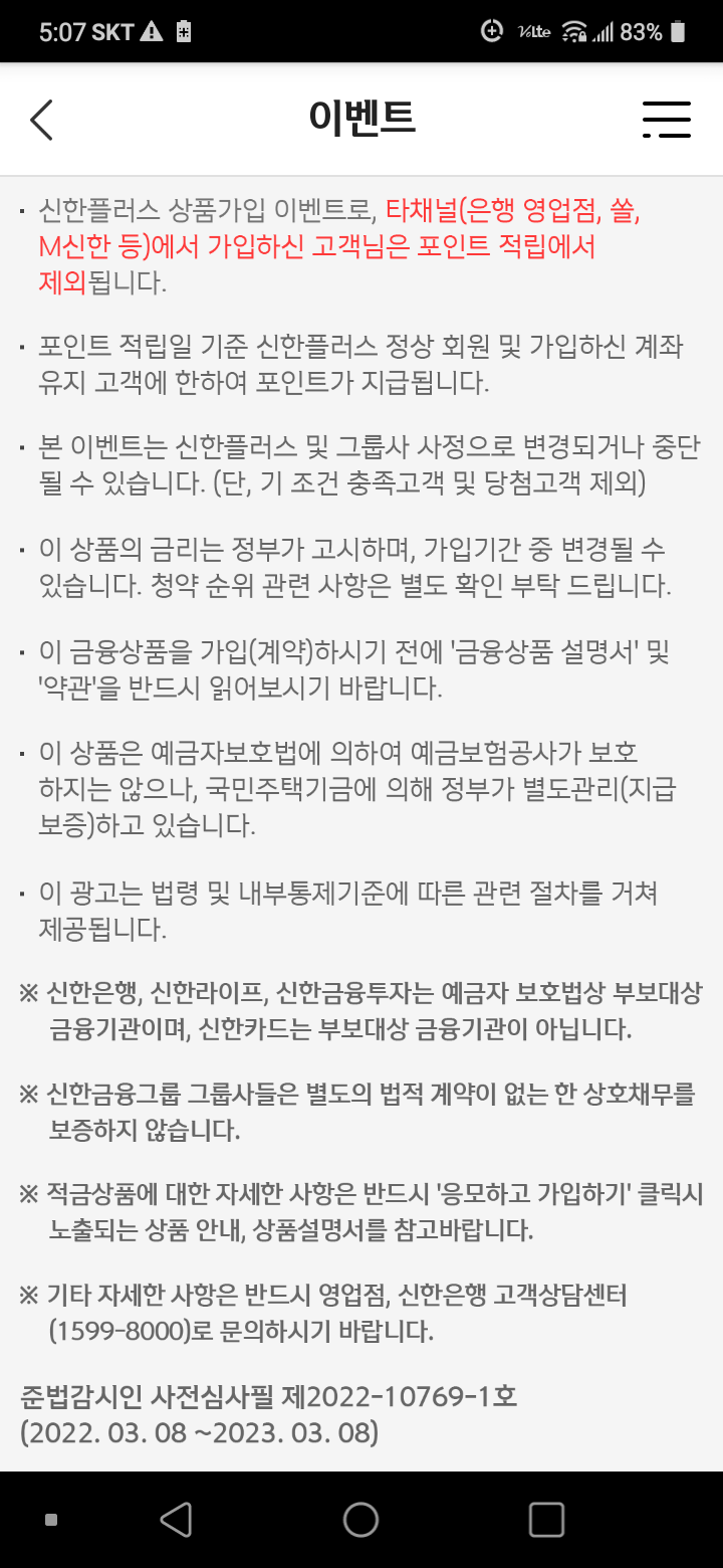 대상 : 22년 03월 13일 기준 신한청약통장 미보유 고객