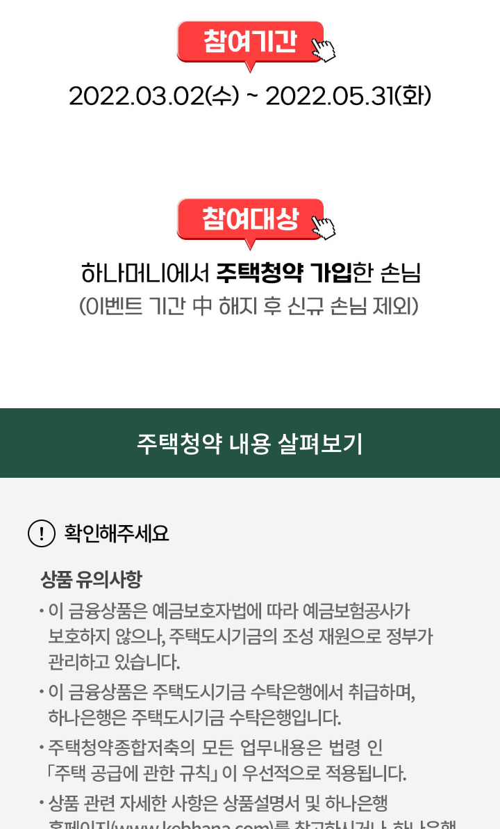 참여대상 : 하나머니에서 주택청약 가입한 손님