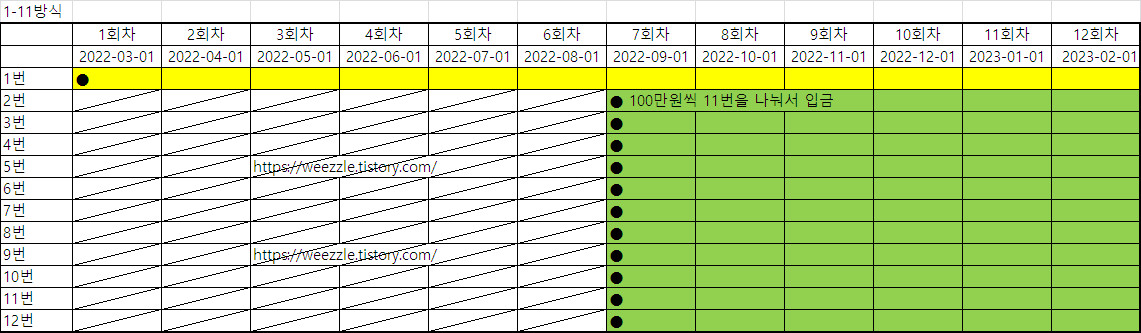 한 날짜에 몰아서 넣을 때는 횟수를 나눠서 입금해야 한다.