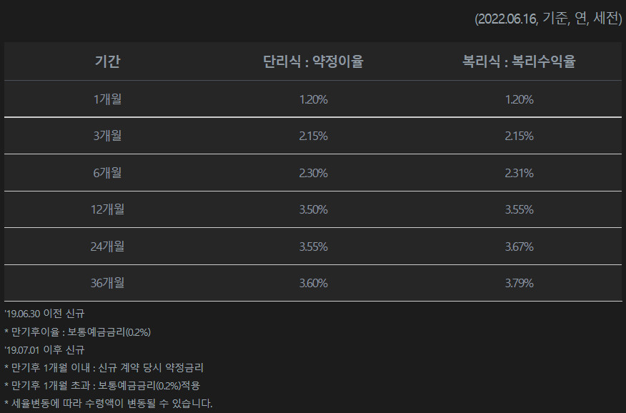 상품소개 금리안내 유의사항 계약 체결 전 상품설명서 및 약관을 확인하시기 바랍니다. 해당 상품에 대해 충분한 사전 설명을 받을 권리가 있으며, 설명을 이해한 후 거래하시기 바랍니다. 예금