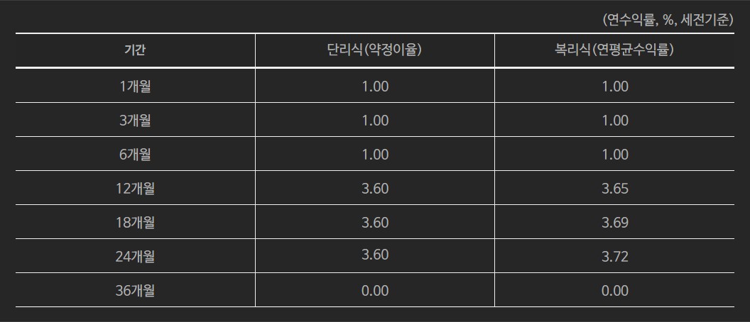 약정이율 : 연 3.60% (확정금리)(세전)