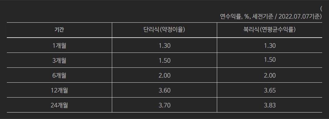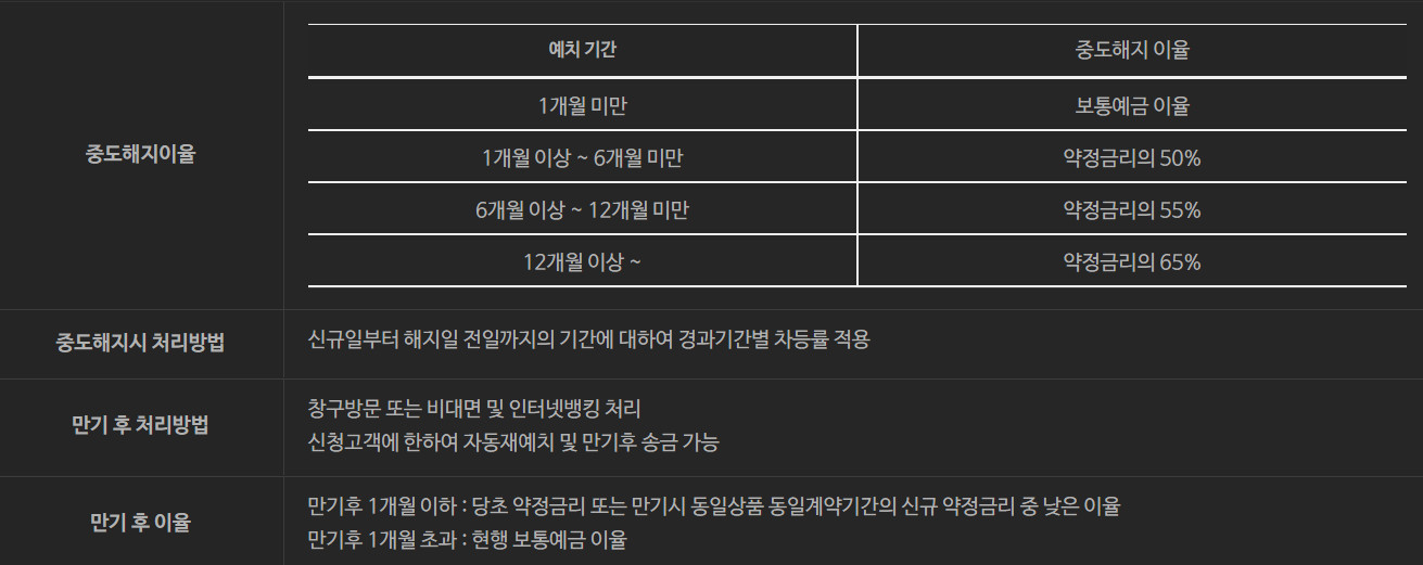 중도해지이율 및 만기 후 이율