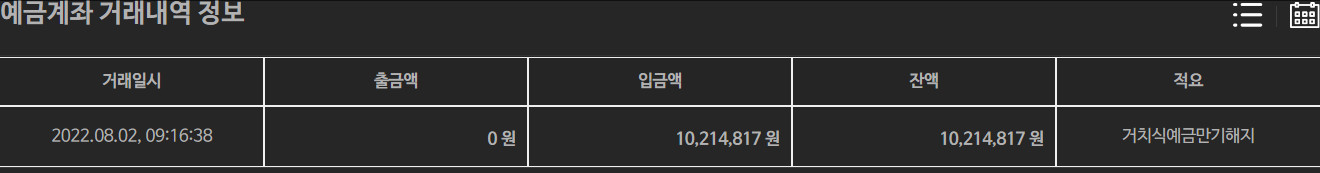 | [2022.08.04] 다올저축은행, e자유해지 정기예금, 3.4% (3.57%복리) x 36개월 x 4,999.8만원 (0) | 2022.08.04 |